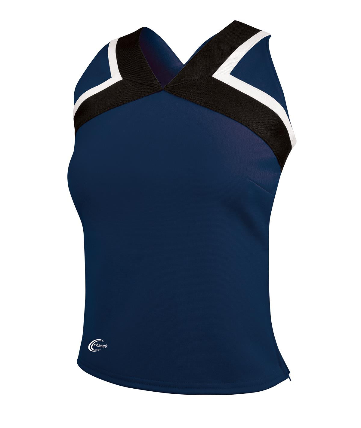 The Chasse Arena Shell Top (Item 818PTB) is made of 100% polyester fitted double knit material and gives any cheer team a fierce look for the sidelines. With a black and white racerback taping design, this fashionable fitted shell top has a side zipper for an easy on and off. Mix your team colors with the black and white neckline to walk onto the sidelines next season with a cheer uniform that will make your rivals jealous! Match the Arena Top with the Chasse Arena Skirt and Bodyliner for the complete cheerleading uniform look.