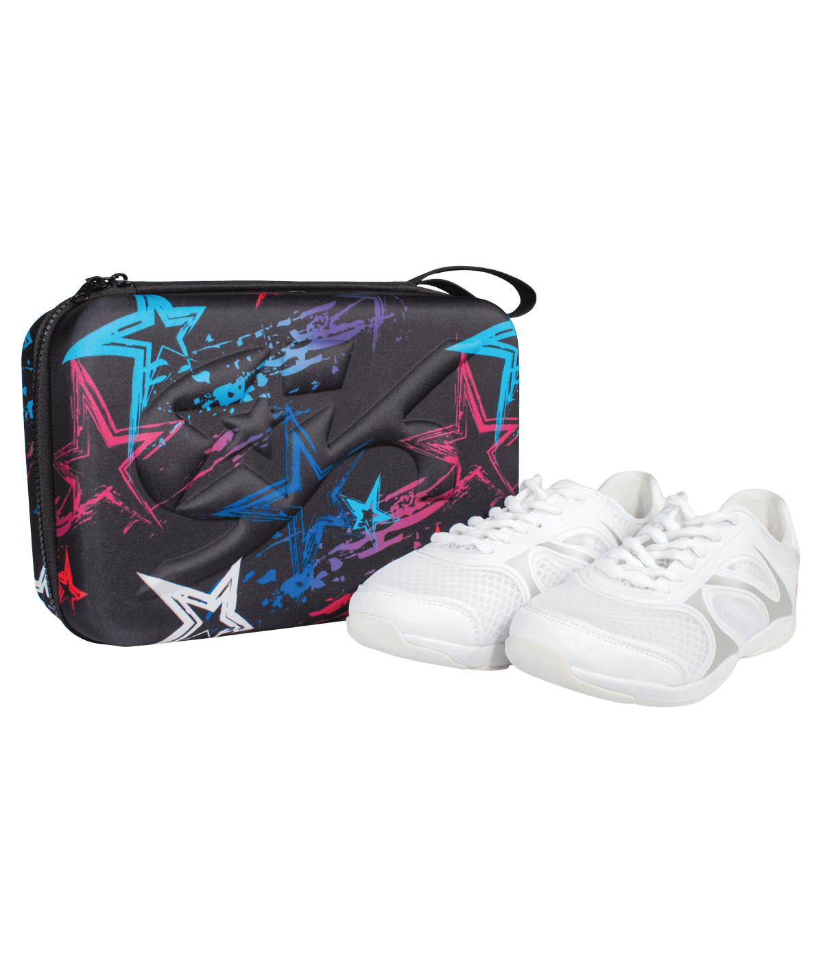 Whether you're practicing or in the middle of a high-stakes competition, these premium all-star GK Spotlight cheer shoes will let your whole squad shine under the spotlight! Available in black and white in youth and adult sizes. Only intended for indoor use. Each pair of GK Spotlight Shoes comes with a reusable hard shoe case, making them easy to transport and store safely.