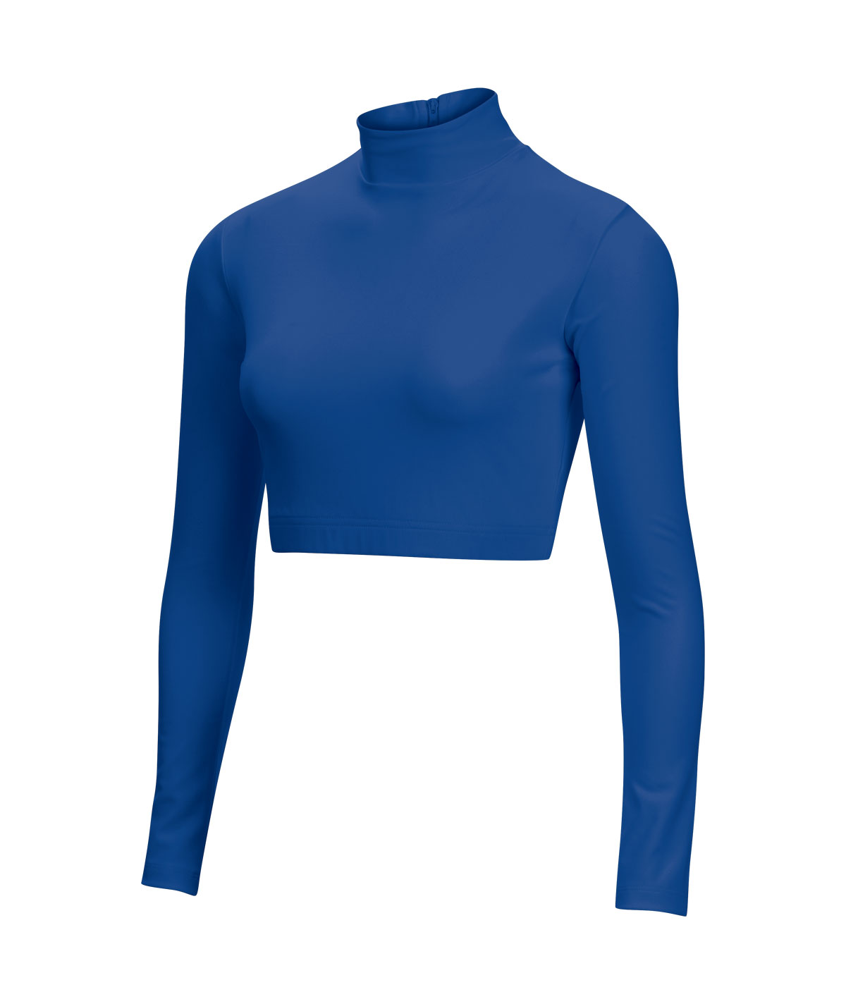 Designed with a mock neck for added coverage, this crop top bodyliner offers 4-way stretch for maximum flexibility and ease of movement, perfect for layering under your uniform. The elastic bottom hem ensures a snug, secure fit that won't ride up during performances. Zip it up and go! The back zipper makes getting ready a total breeze! Made from a blend of 90% Polyester and 10% Spandex, it provides the perfect balance of breathability and durability, keeping you focused on your routine.