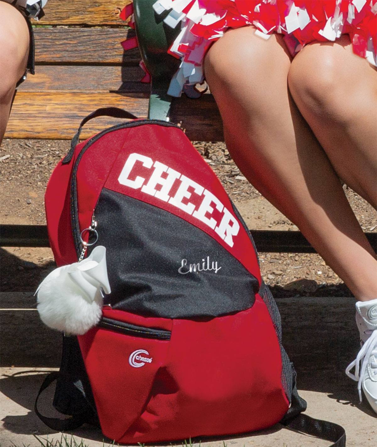 Whether you?re heading to a local practice, a faraway competition, or a cheer camp, the Chasse customizable cheer backpack is your reliable travel buddy. Available in a variety of colors, including Black, Maroon, Navy, Purple, Red, and Royal, it?s easy to choose one that matches your team's uniform colors or your personal warmup apparel style.