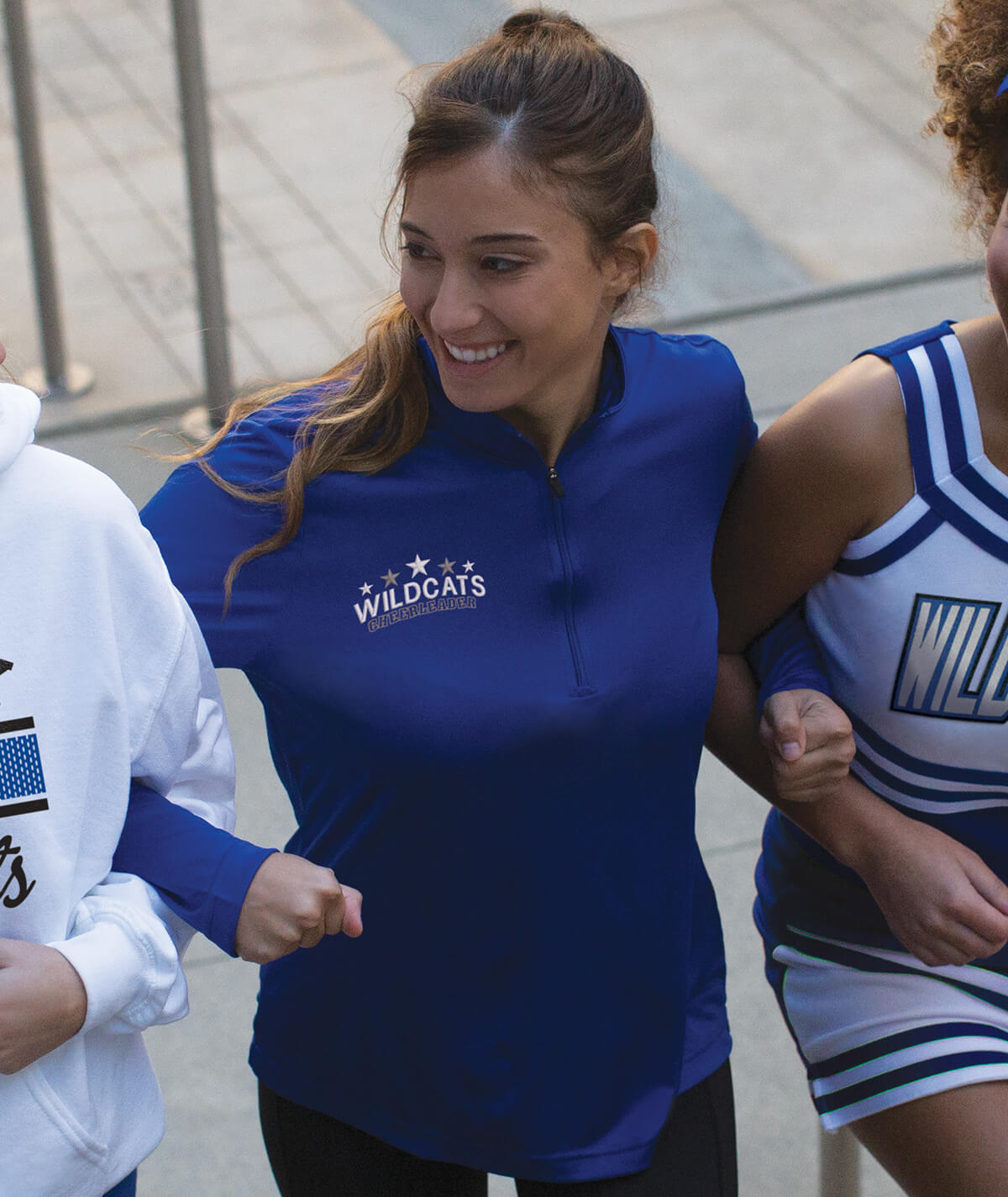 This top isn't complete without the perfect bottoms to go with it. Check out our warmup bottoms that will match the comfort and style of this performance quarter-zip and have you ready to cheer in no time.