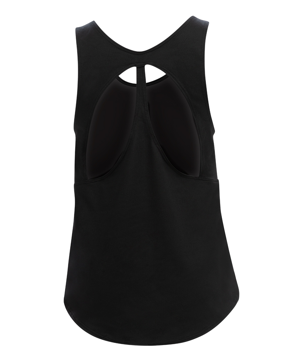 Say hello to the scoop-neck relaxed fitting tank top with modified t-back. The high-low design provides a chic and fun fit while heather-light fabric offers nothing but comfort.