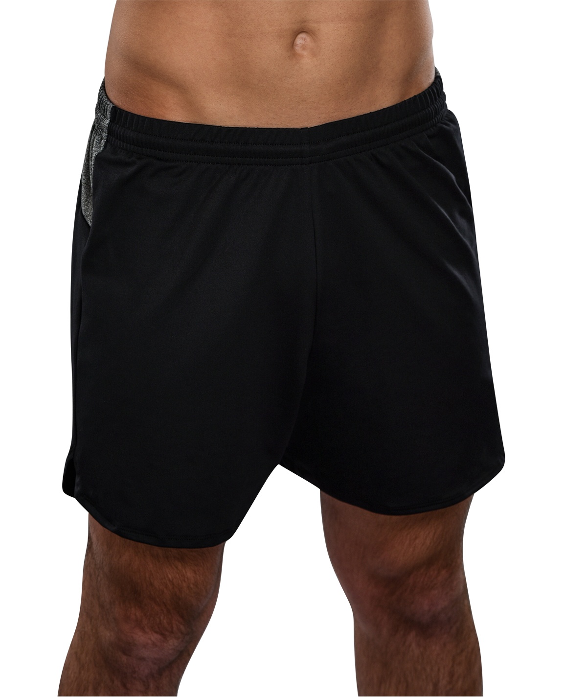 When you're heading to cheer practice or training outside of the gym, you need a pair of men's cheer shorts that can handle the activities you're about to be doing. This relaxed men's cheer short with mid-length inseam features a 1 1/2 inch steel heather accents, drawcord elastic waistband, and moisture-wicking four-way stretch black DryTech fabric.
