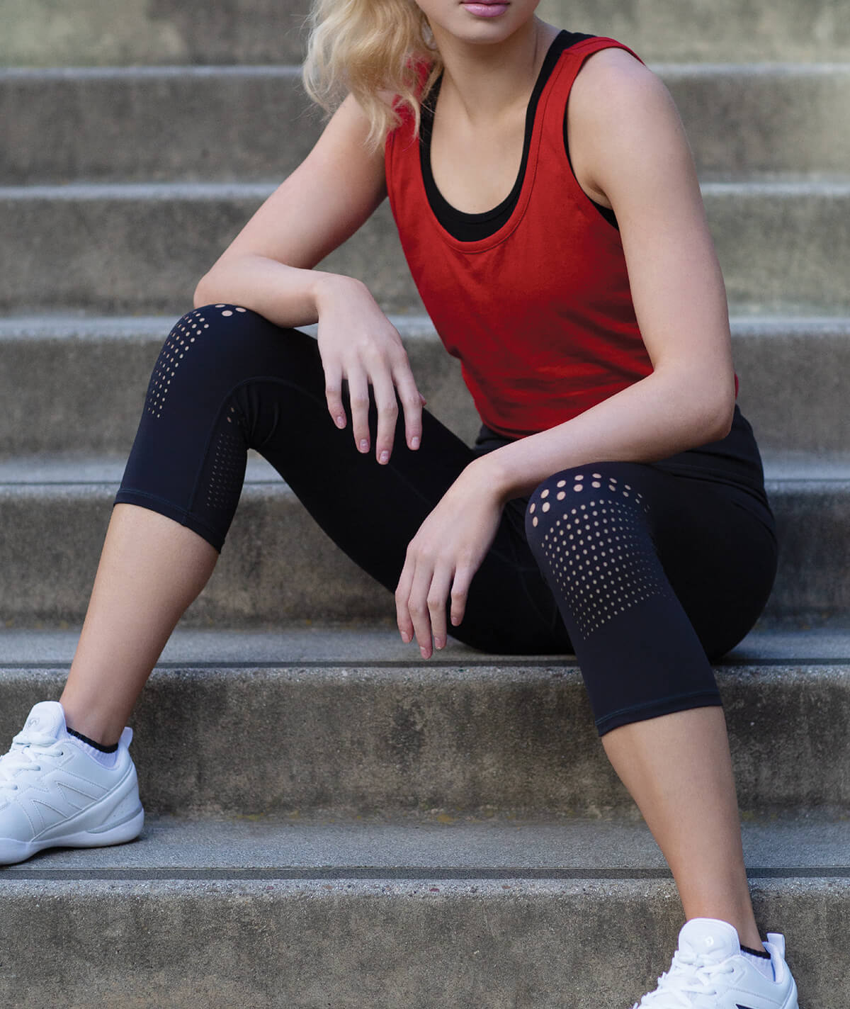 We never stop the pursuit of perfection. Our GK High-Waisted Laser Cut Capri (PCAP03) is totally cool and ready to turn heads. Made from 77%Polyester, 23% Spandex, these leggings are designed to outlast the rest, just like you. Fall in love with the flattering wide waistband and laser cut lower leg detail that adds a little something extra!