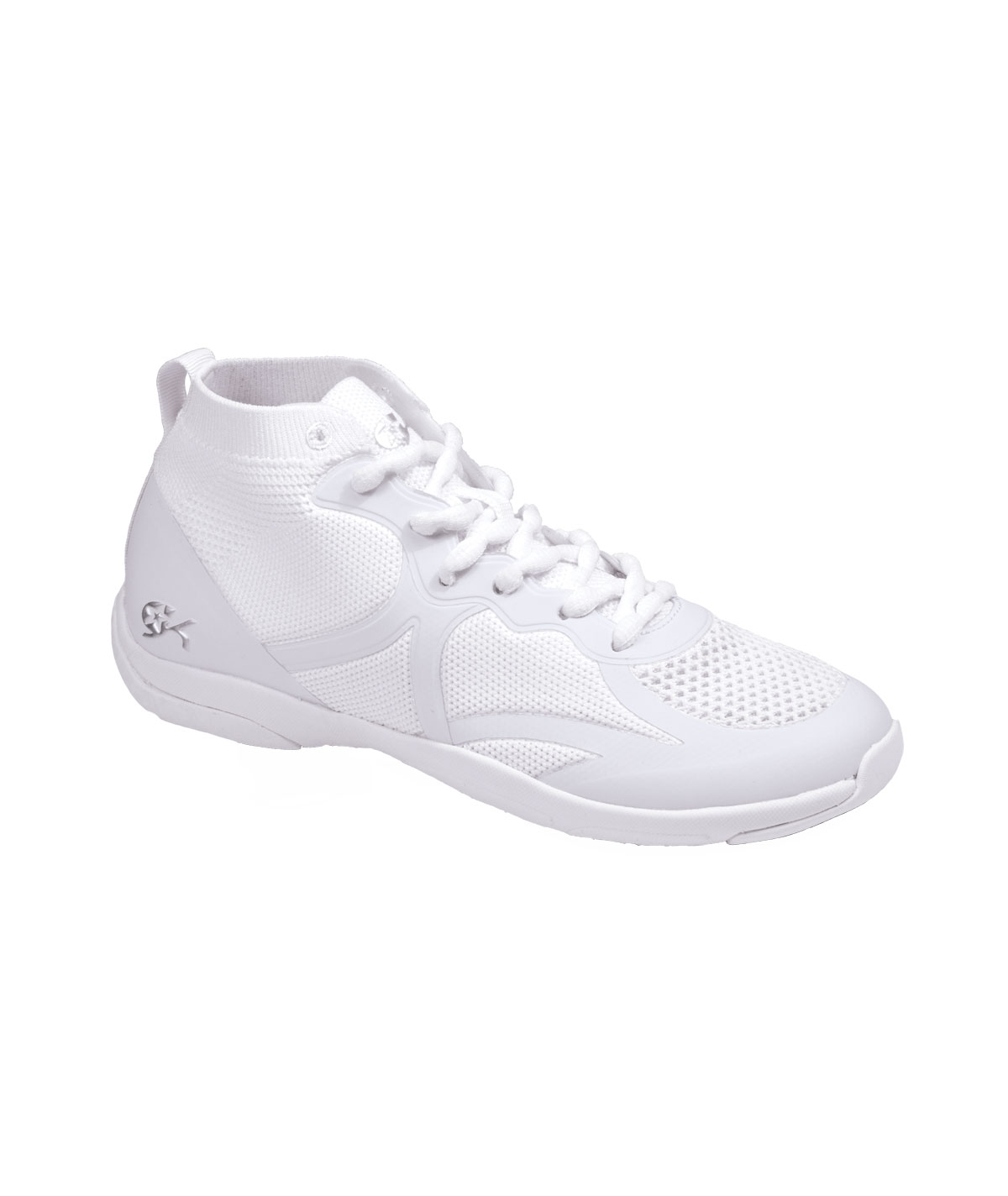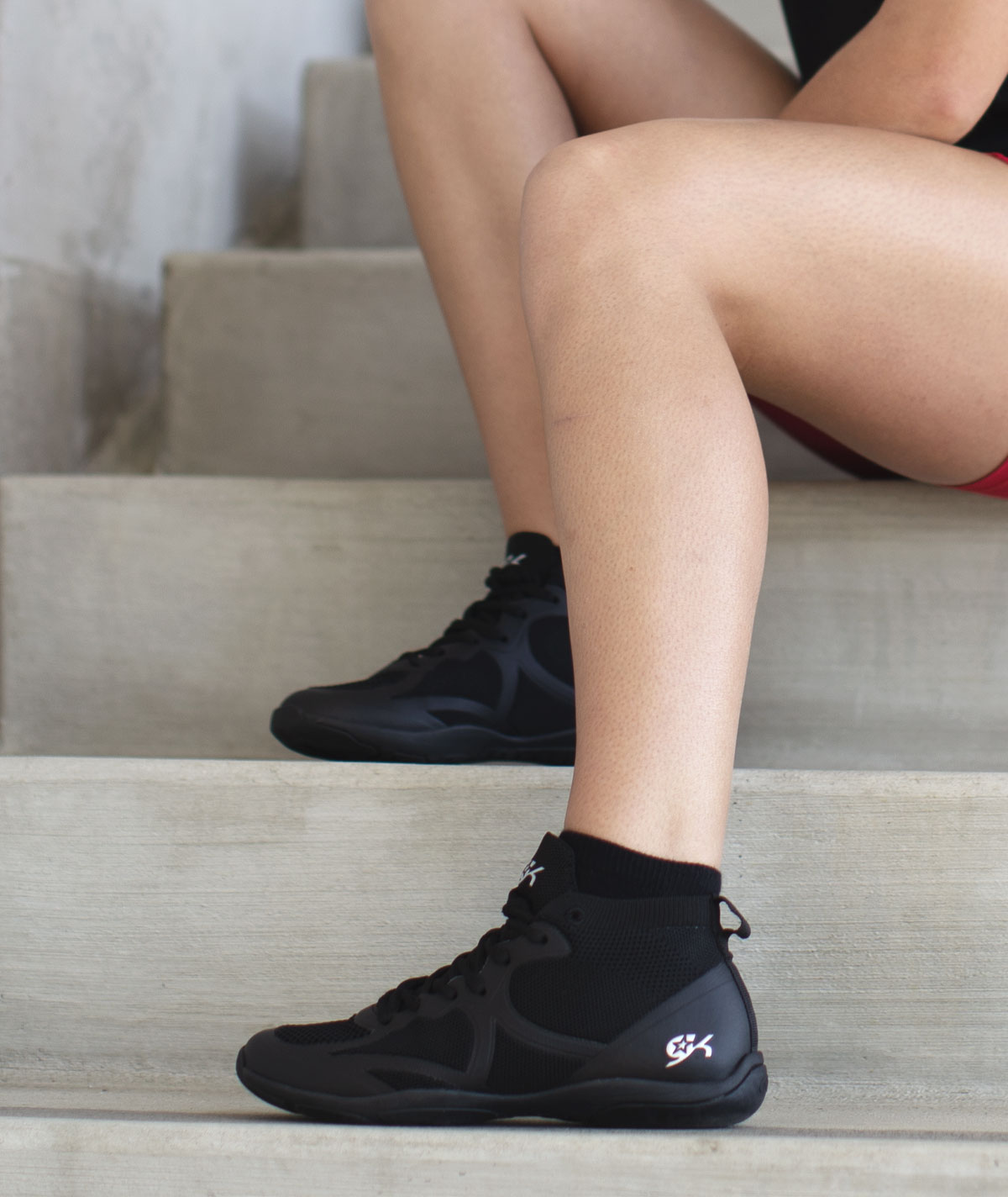 Elevate your cheer shoe game with this stylish and supportive all star cheer sneaker that's perfect for practice and competition. The GK Hi-Flyer Mid Shoe (S2302) has a mid-top ankle design built to stabilize movement for even the most demanding stunting skills. Not as high as a high top and not as low as a classic shoe, this mid-level ankle height provides the perfect combination of support without bulk. Whether you're flying, tumbling, or lifting at the base you'll love the comfortable knit ankle fabric that provides flexible support and plenty of grip. You spend hours at the gym so you'll also appreciate the comfort insoles with lightweight outsole construction.