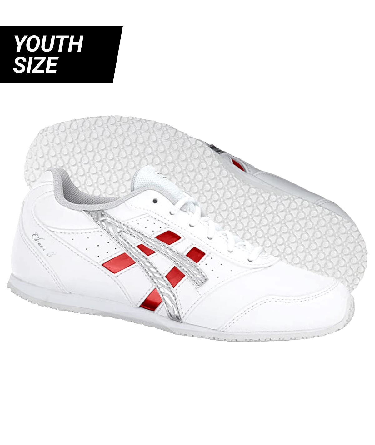 The Asics Cheer 8 is perfect for all games and cheerleading activities. The shoe is White but comes with customizable color cards on its tongue and sides to match with a wide variety of cheerleading attires. Not to mention, there is a wide range of sizes for youth and adults.