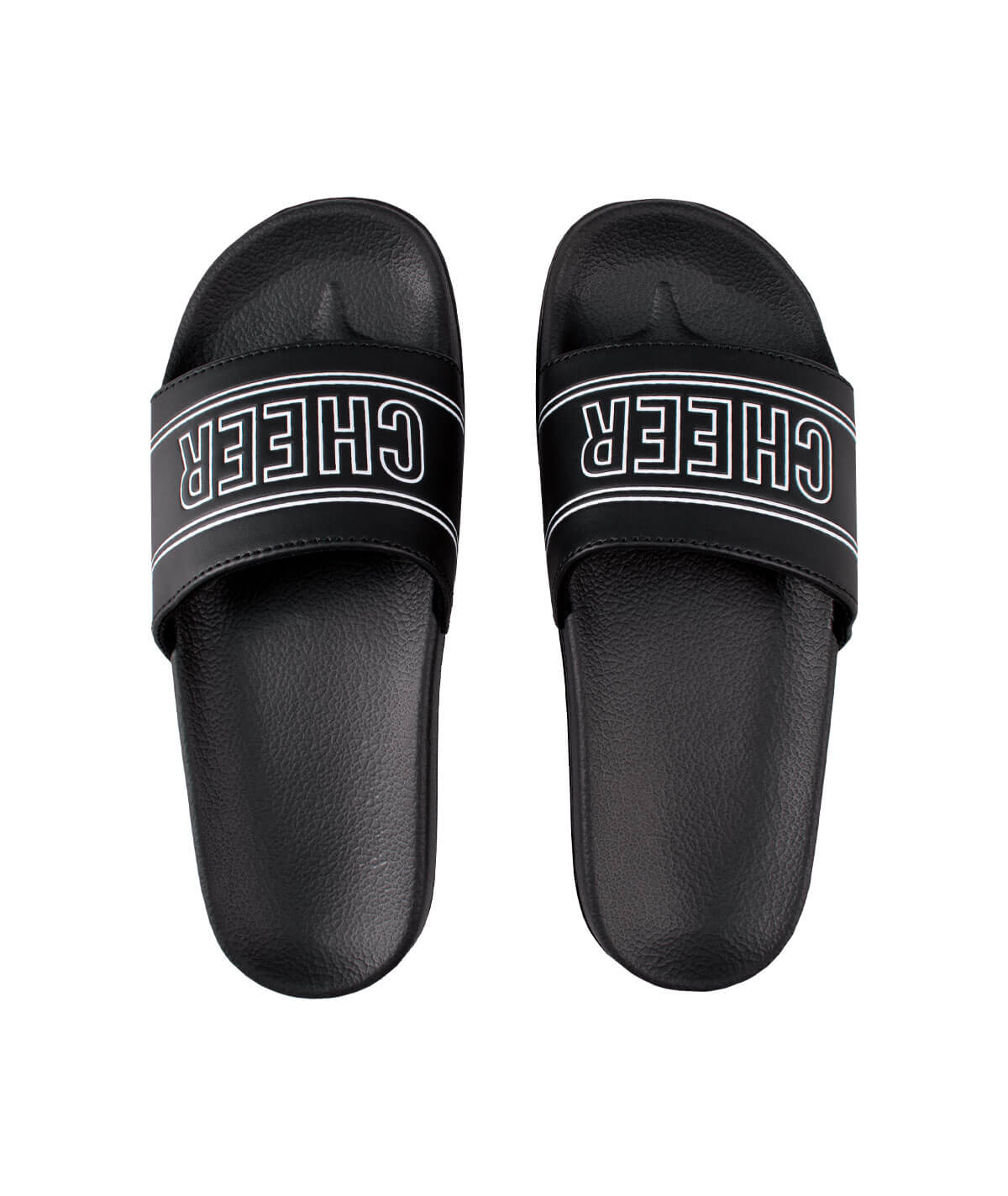 Take your comfort level to the max by pairing these slides with one of our cheer warmups or your favorite practice wear tops and bottoms. Comfortable yet stylish cheer apparel is the way to go when you are always on the go.