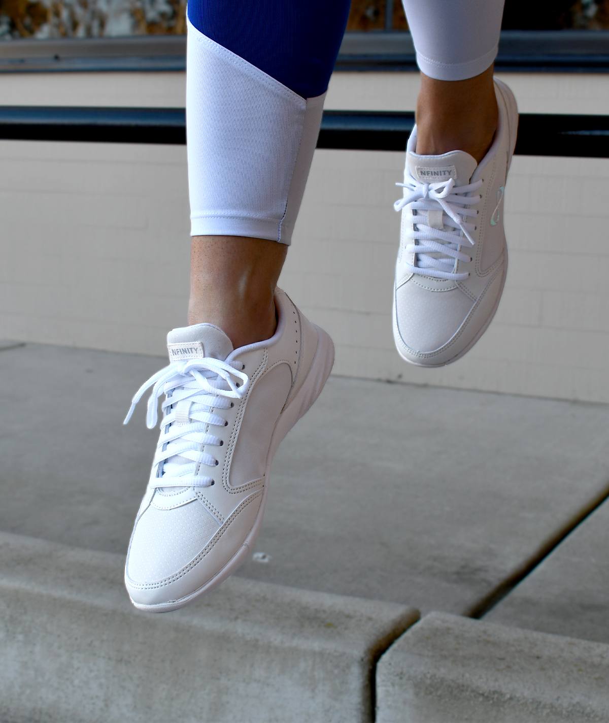 Your cheer shoes are just as important as your cheer uniform! The Nfinity Fearless cheer shoes (S1943) are a premium, versatile pair of sideline solid white cheer shoes with the ability to adapt to any surface, from the gym floor to the school field, and always maintain a solid grip. This thoughtful engineering means you can focus more on your cheers and less on foot fatigue, making every jump and stunt smoother and more powerful.
