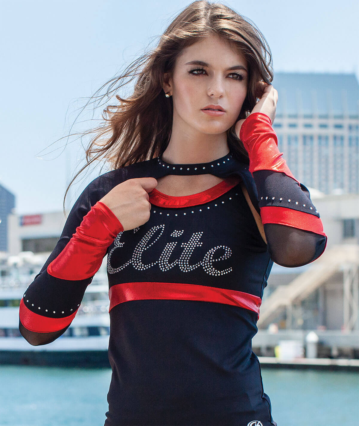 As a cheerleader, you know that practice is just as important as performance. Why not do it all in the same outfit? Once you've collected your GK All Star Odyssey practice wear, there's no need to buy a separate uniform?these accessories will transform you into performance mode! The GK All Star Odyssey Shrug is a choker-styled sleeve lined with rhinestones to illuminate the shine in your performance. The shrug also features metallic stripes and mesh detail for breathability and style. For a practice-to-performance look, combine it with the GK Elite Odyssey Tank (177GTK) and GK Elite Odyssey shorts (175GSH), as well as with the GK All Star Odyssey Gauntlet Sleeves (187GGT) and GK All Star Odyssey Spats (188GSP).