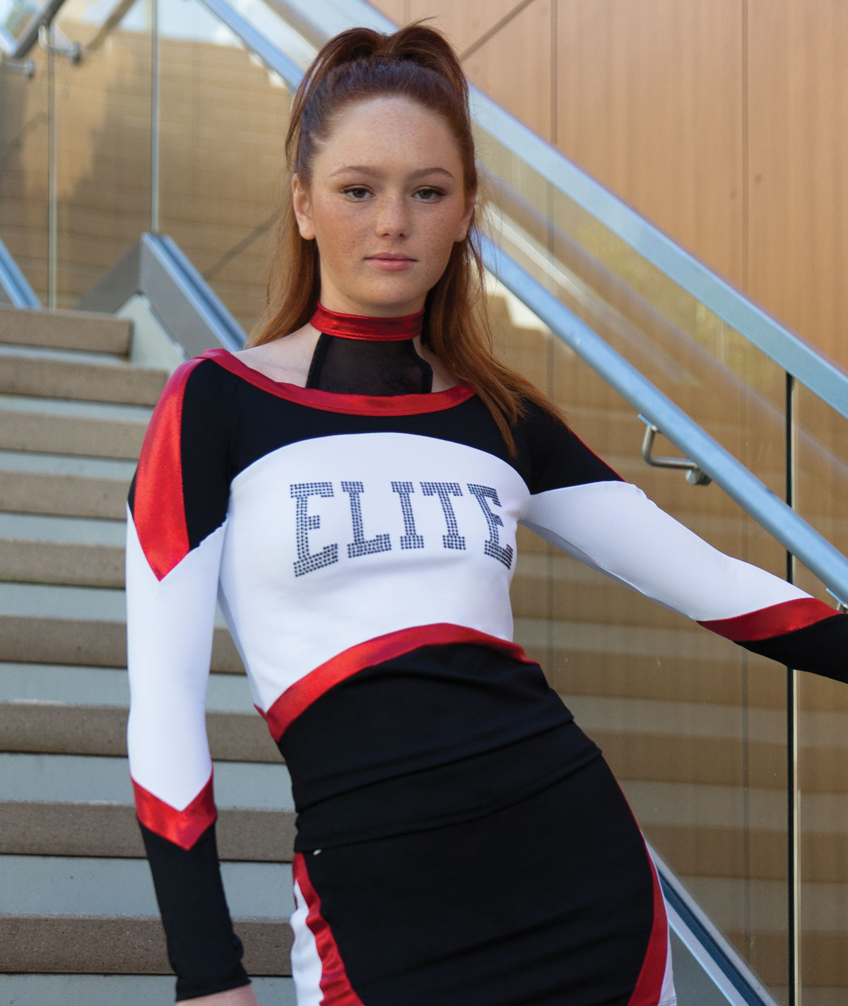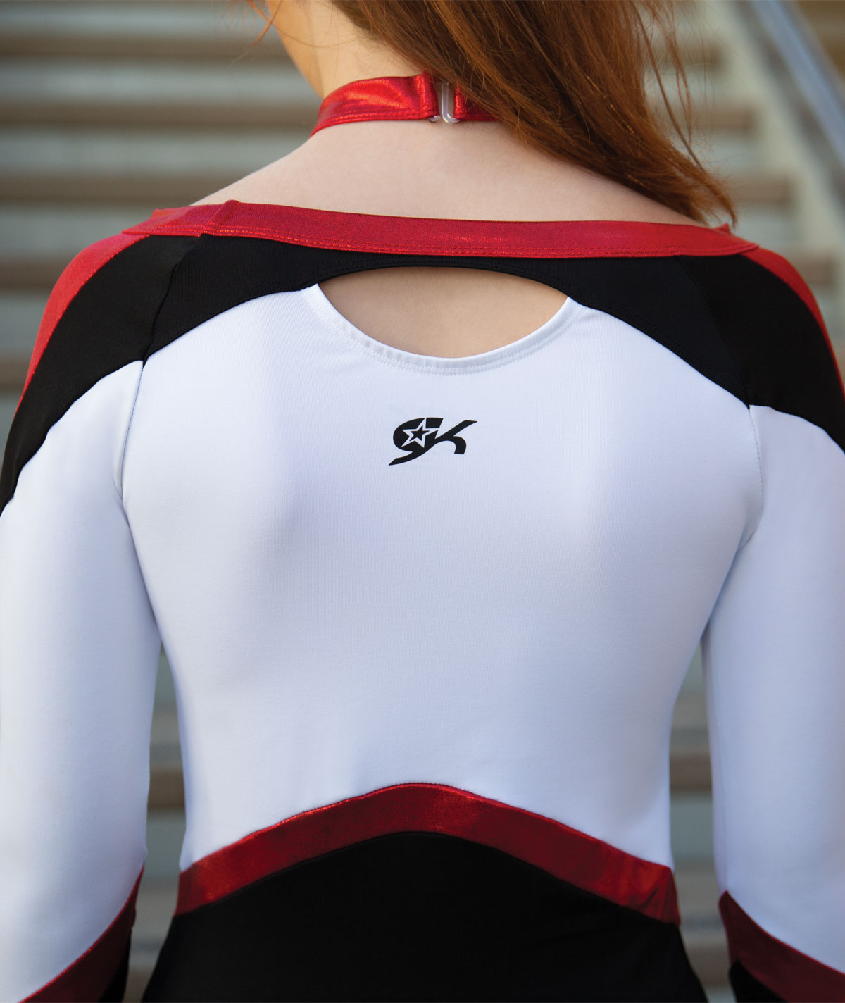 If fame is what you seek, you'll be halfway there with the GK All Star Acclaim Famous Top (UGK2308). Made for cheer athletes dreaming about going the distance, this fancy long sleeve top with a mesh collar neckline and gorgeous keyhole back is sure to exceed all expectations. You'll shine brighter under the lights with metallic panels and a flattering contrast color block design throughout.