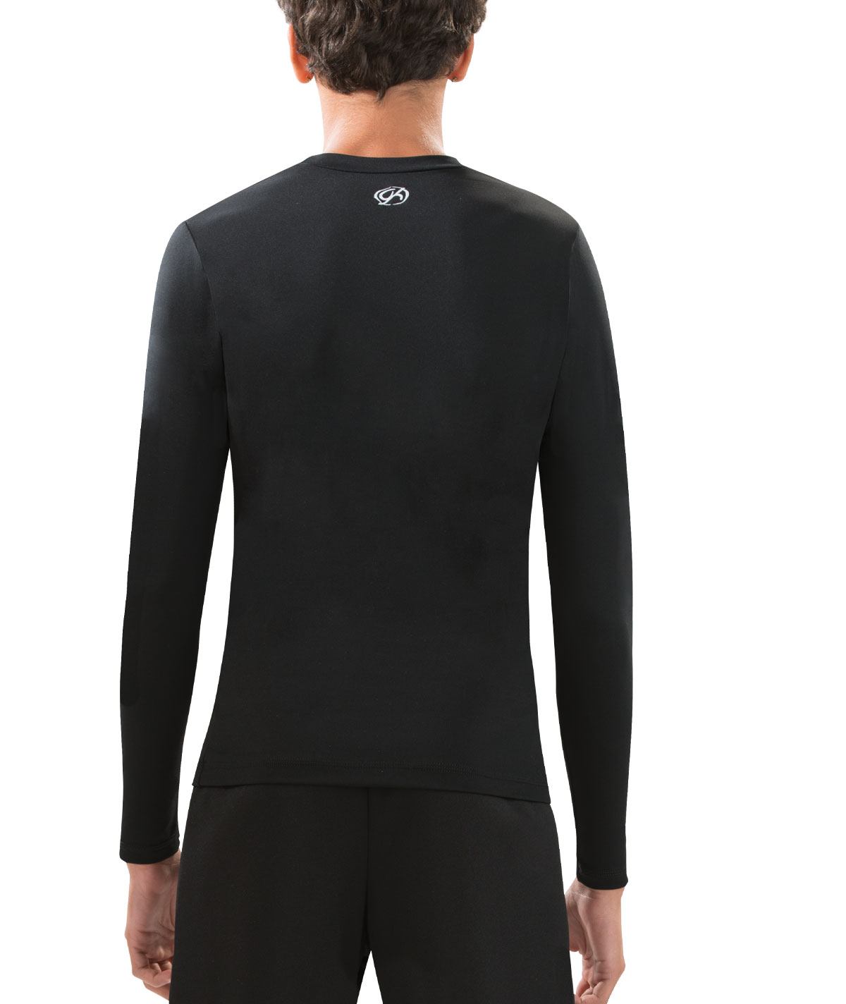 The GK All Star Men's Basic Uniform Top is a long sleeve crew-neck cheer shirt in moisture-wicking black DryTech with a white GK Cheer logo. Pair it with your favorite GK Cheer Men's Cheer Apparel for a floor-ready style or keep it casual with the GK All Star Mens Black DryTech Pants.