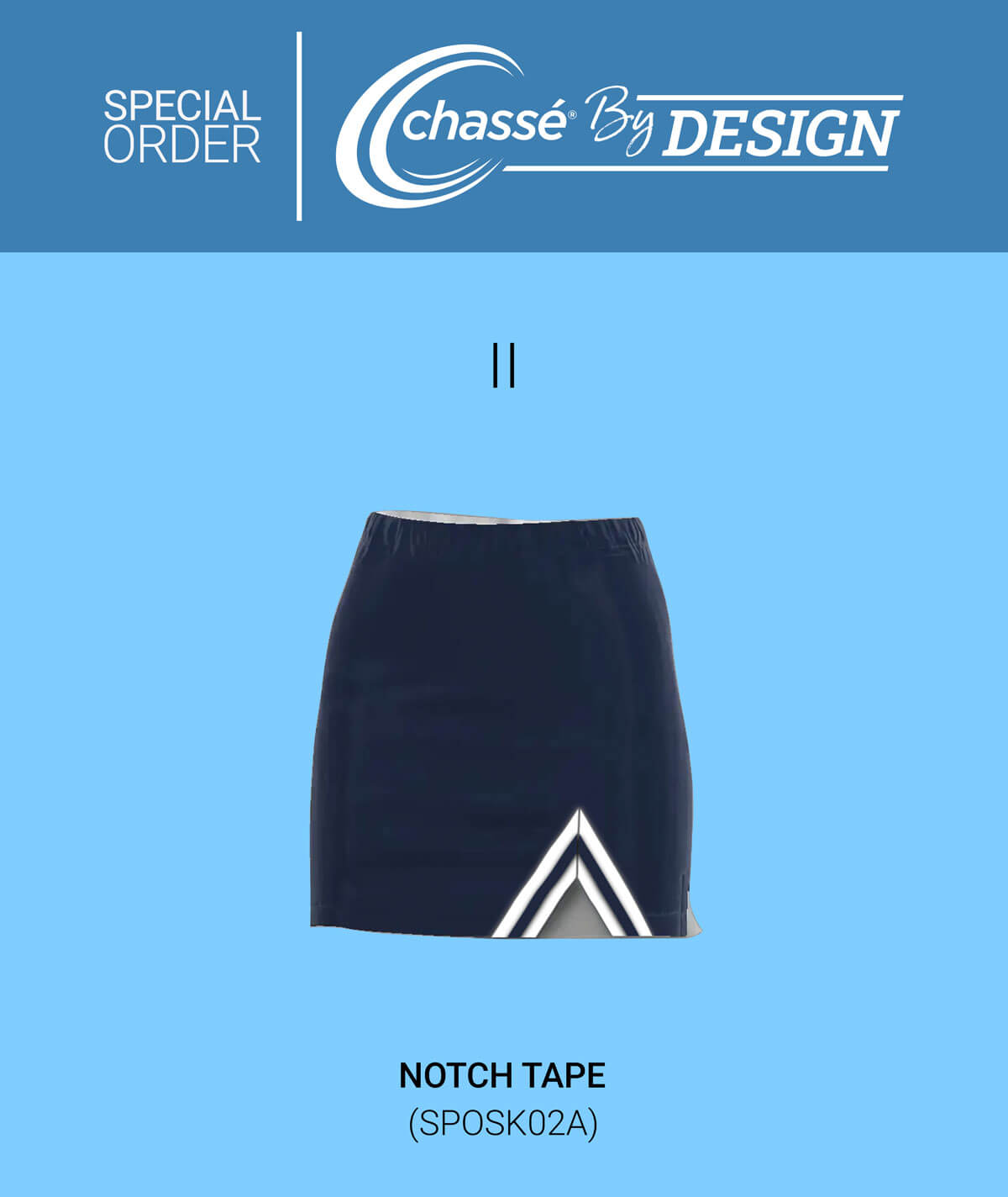 The GK Spirit Solid V-Notch Skirt with Tape (GS417K) offers a timeless design with a modern twist, perfect for creating a standout cheer look. Featuring custom notch tape trim detail, this made-to-order uniform skirt gives you full control over your team?s style. Simply click customize to choose your taping and color options, creating a unique look that reflects your team?s personality.