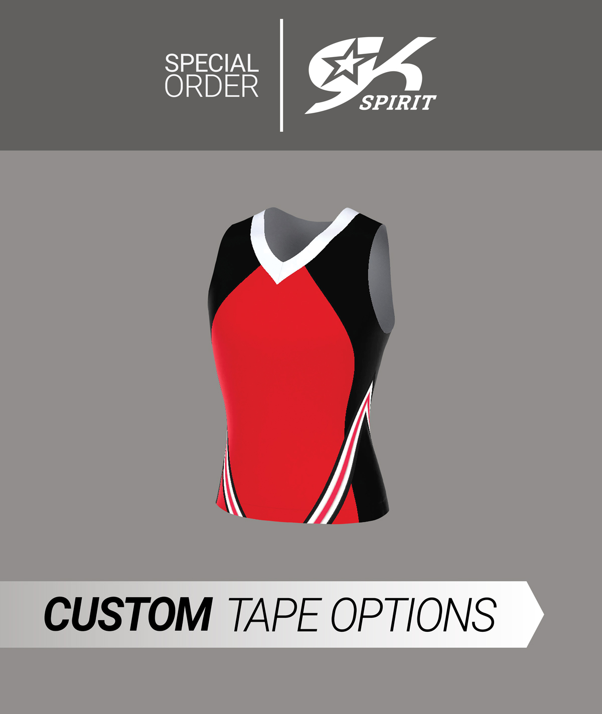 Ready to design your dream uniform? Simply click to customize online and choose all of your premium options including custom stretch-knit tape trim. Choose your tape width, pattern, and colors. Design and order the perfect uniform online in just a few clicks.