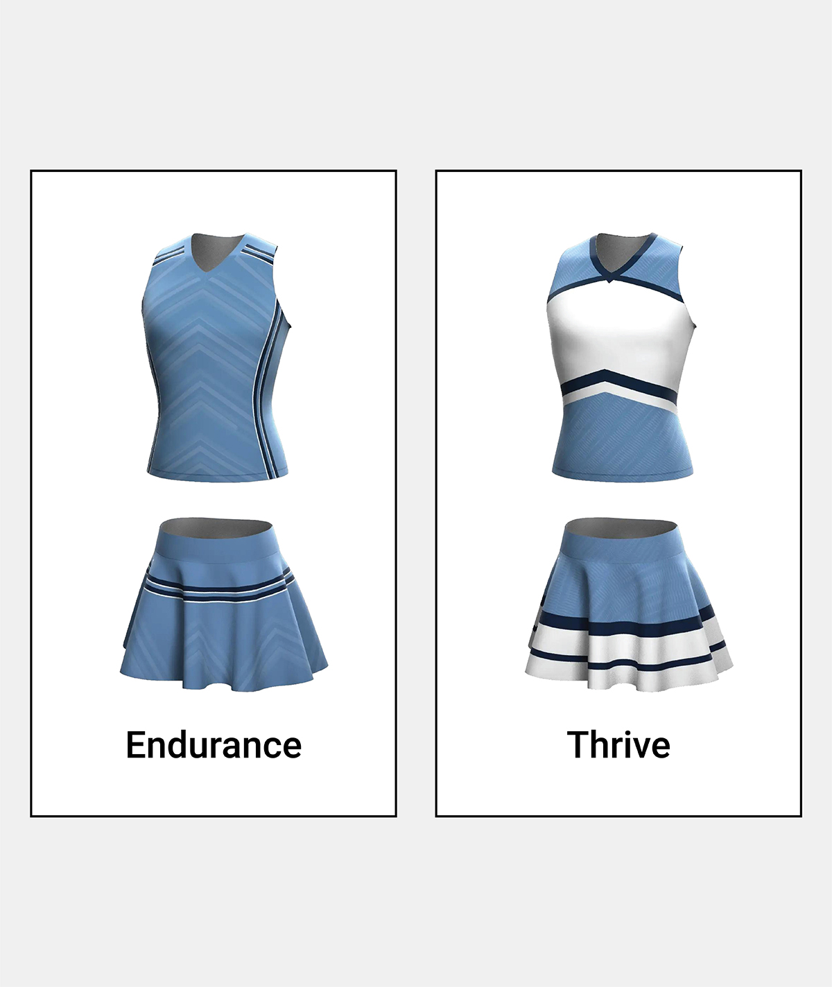 Crafted for champions, this cheerleading uniform skirt boasts premium quality and a design that stands out. Stand out with a trending flutter skirt design that flatters every athlete. Create a custom cheer uniform that radiates your squad's energy and passion without the custom price tag.