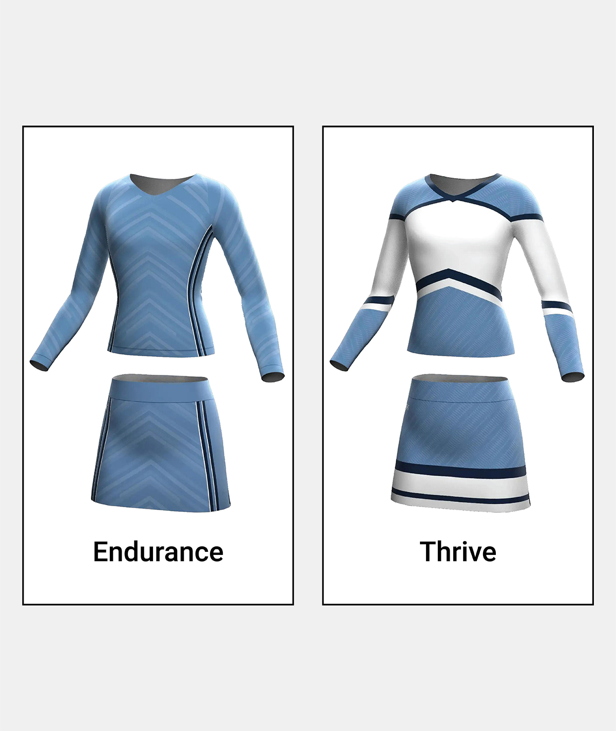 Ready to make it yours? That's easy! Our interactive online design studio allows you to place your colors and view your design online before you buy! Simply click the button to customize and follow the steps to your new custom sublimated uniform complete with your team name or logo, or pick from our design library. Want to finish off your uniform with sublimated cheer warmups or a custom cheer bow? Omni Cheer is your one-stop shop for all things cheer!
