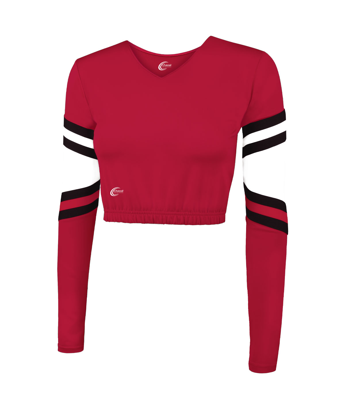 The Chasse Performance Contender Bodyliner (Item 719PBS) is an edgy addition to any sideline team! This 3-color polyester-lycra V-neck bodyliner features contrast tape detail, a 2-panel sleeve, and a 1" elastic bottom hem. The Contender Bodyliner matches the Chasse Contender Uniform Shell Top (Item 717PTB) and the Chasse Contender Uniform Skirt (Item 718SKB). This modern stretch performance bodyliner is available in a variety of sizes and team colors, so any team can get the Contender look!