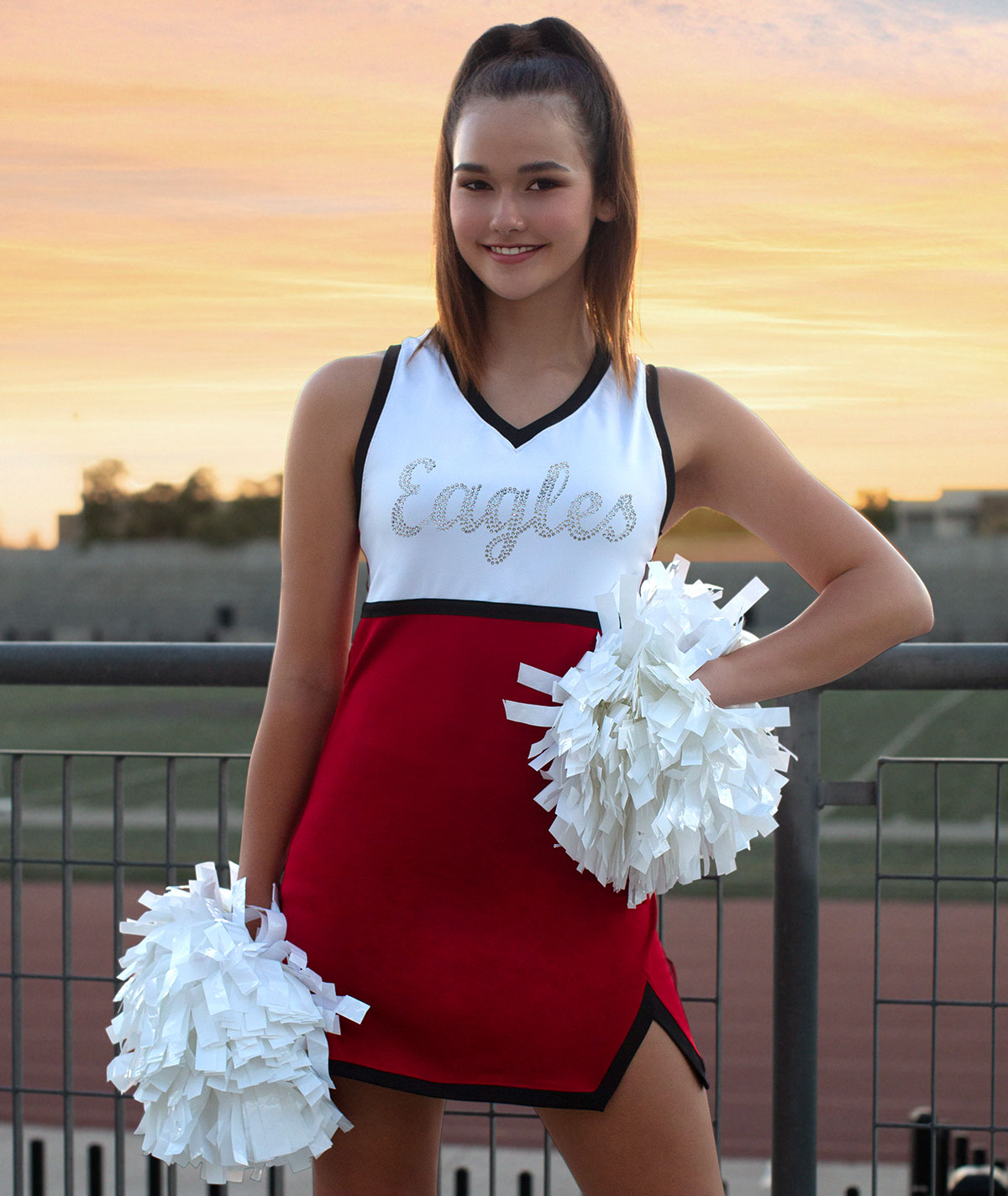 Game day preparation just got a whole lot simpler with our GK Prestige Dress (UGK2400)! This stylish cheer uniform dress boasts a racerback design and a sleek v-notch hem detail, ensuring you're not just ready to cheer but also looking your absolute best.