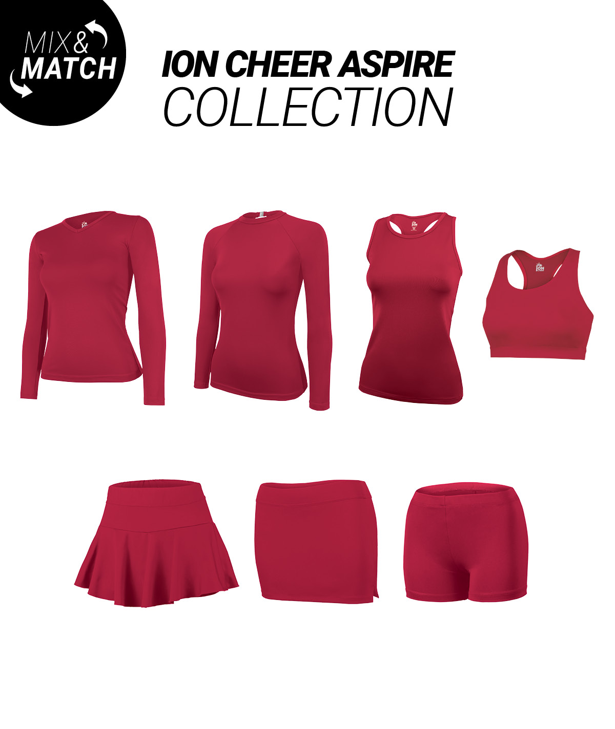 This top is part of the ION Cheer Aspire Collection and is designed to seamlessly mix and match with other tops and bottoms in the collection. It allows for easy transitions from practice to competition, maintaining a cohesive and professional look.
