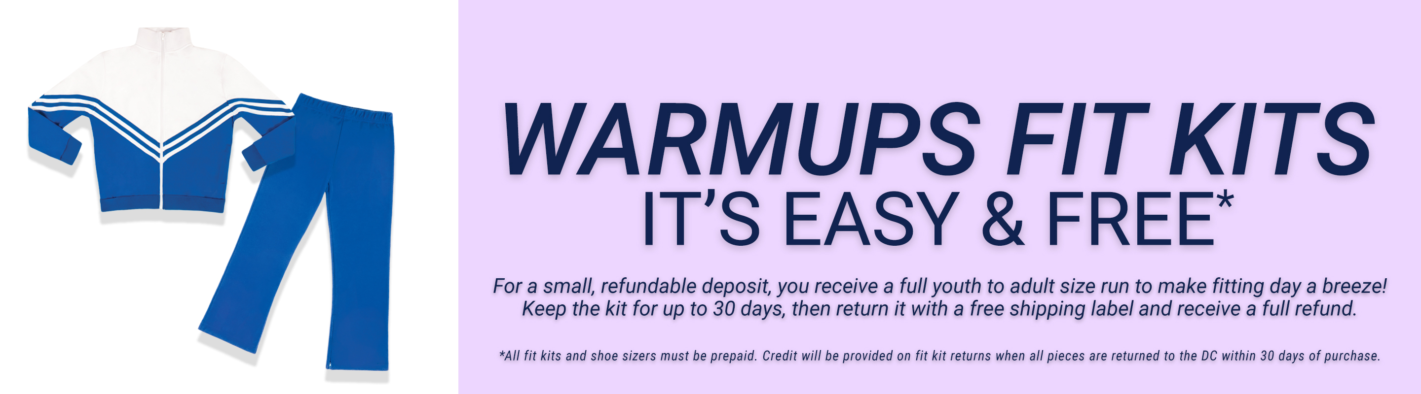 It’s simple—just decide on the items your team wants to wear for the season, find it on the fit kit page, and place your order! Once you receive the fit kit for your cheer uniform, cheerleading warmups, or cheer shoes, gather your squad to have everyone try on each fit kit until they find the size that fits them the most accurately. Once your entire squad is sized and you have everyone’s sizes written down, return the cheerleading fit kit within 30 days of purchase for a full refund! Fit kits and shoe sizers are the best way to take the stress out of sizing your cheer squad and making sure that any non-refundable customized uniforms you order will fit perfectly.