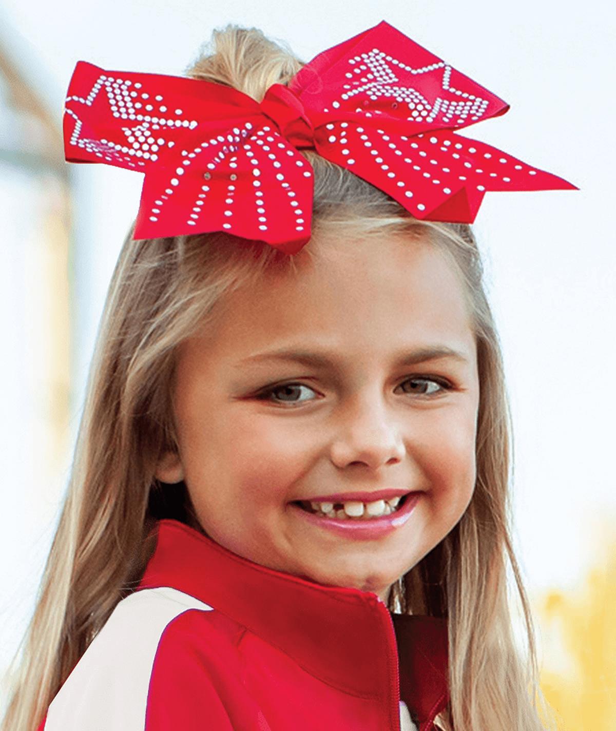 What are your cheerleading goals? Whether it's winning a competition, landing a challenging stunt, or inspiring others with your spirit, let the Chasse Super Star Hair Bow be part of your journey. You'll look out-of-this-world as you flip, fly, and shine on the sidelines or performance mat. This star-patterned cheer bow is a reminder to always reach for the stars?on and off the field.