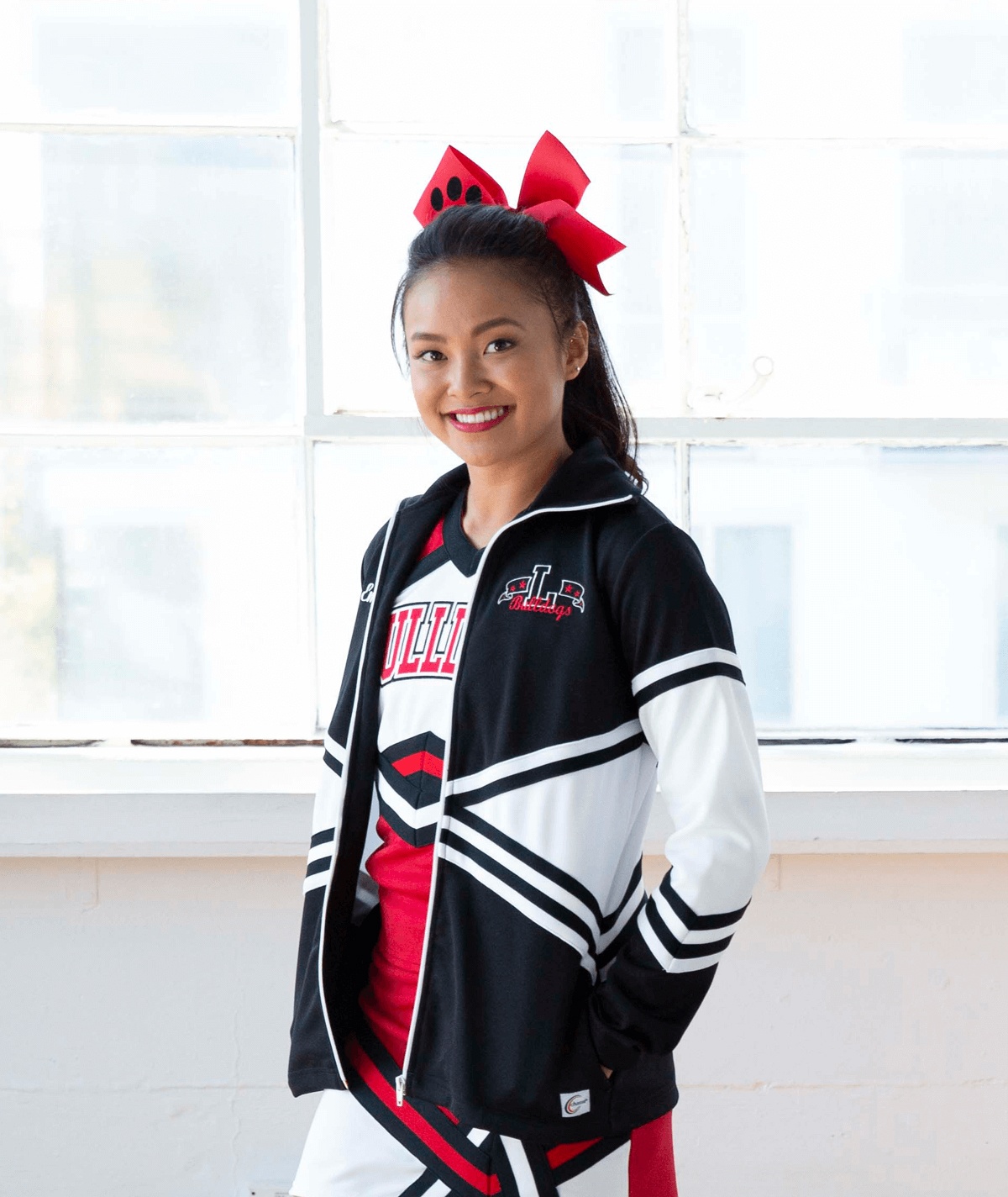 Available in a range of colors, including black, green, maroon, navy, purple, red, and blue, the Chasse cheer zip-up jacket can be perfectly paired with your team colors. Further, personalize your jacket with our online design tool that offers tackle twill or embroidery options. Add your team logo, customize this cheer jacket with your name, or add any other design to truly make it your own.