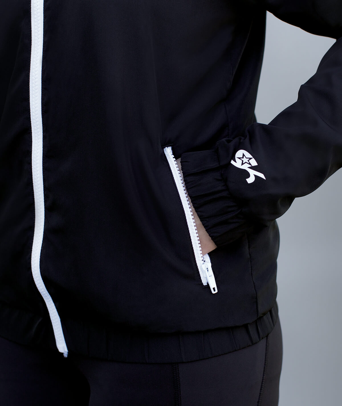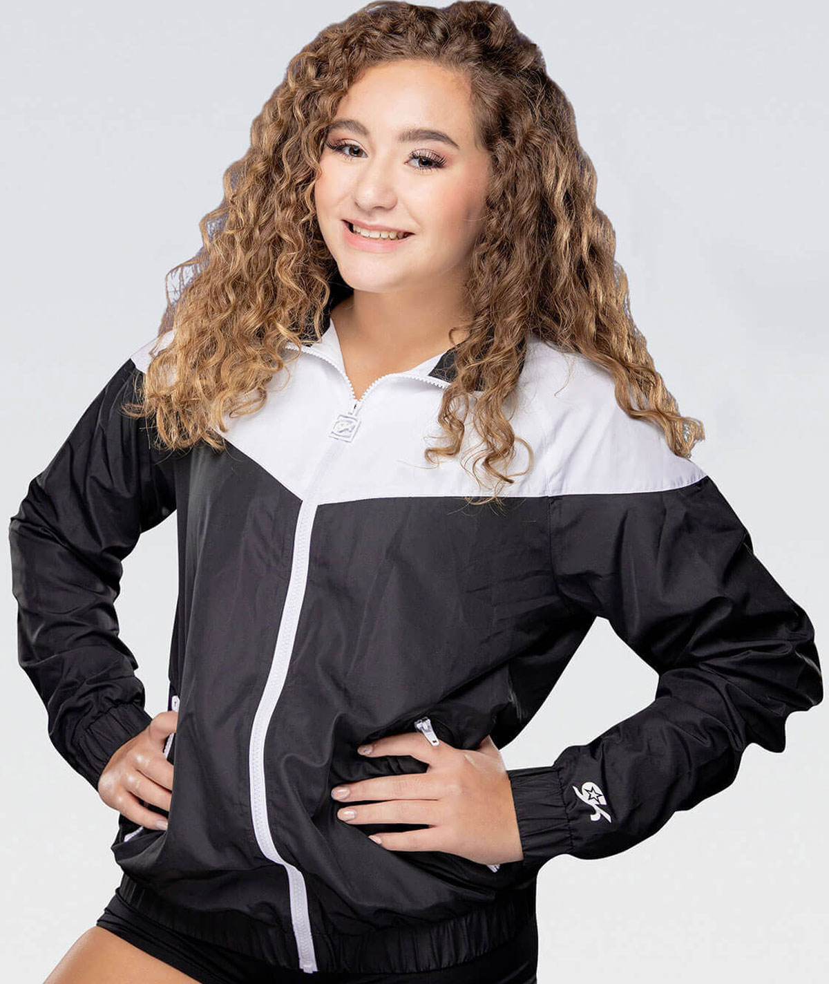 Stay warm and covered up with the fashion-forward GK All Star Windbreaker. The color-blocked hoodie features white and black blocks that will make you stand out in style. The windbreaker jacket is a perfect for before and after cheerleading practice or on the way to your next cheerleading competition.