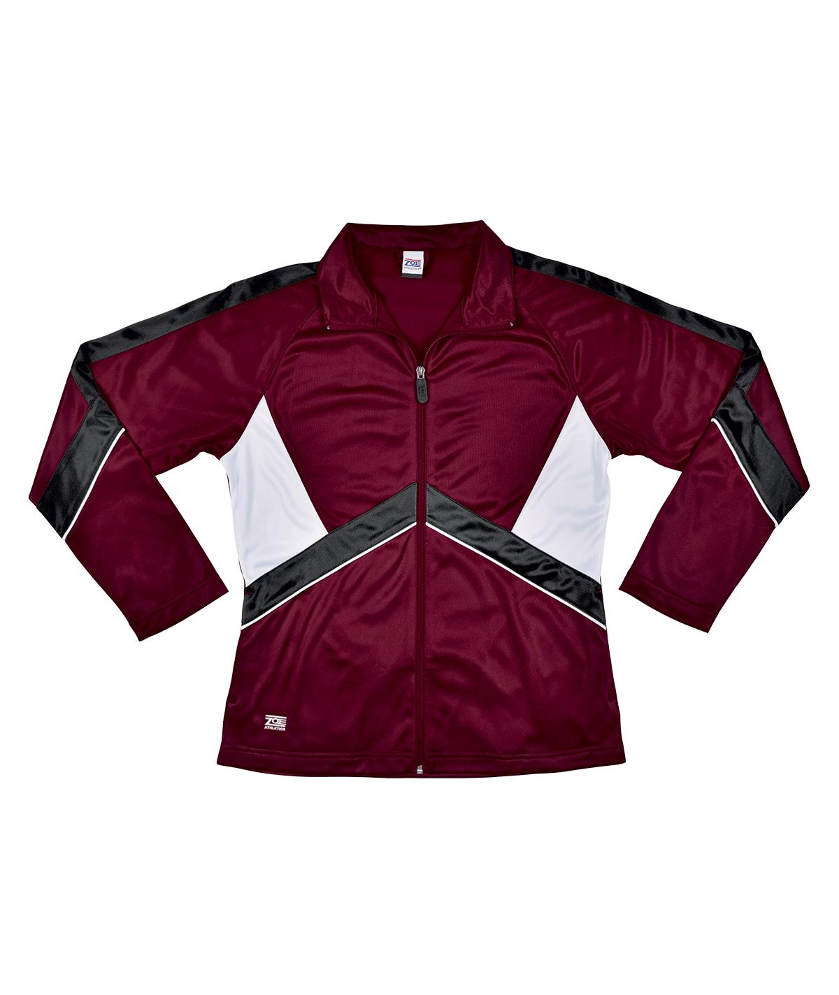 Zoe Athletics Horizon Jacket (W981J) is made from tricot polyester knit. The full-front zipper makes it convenient to get in and out without messing up your hair and makeup. Featuring side pocket zippers that allow you to keep full control of your belongings. The white piping and inserts with black contrast stripe across chest and down the arms add perfect pop of color to your outfit. This comfortable warmup jacket is available in many popular school colors with a wide selection in sizes.